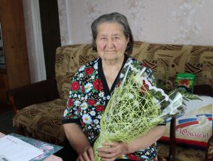 Родилась 03.06. 1929 года, в селе Утянка, в многодетной семье (7детей). Отец работал в колхозе пасечником, мама тоже работала в колхозе. В 8 лет пошла в школу, но дети войны учились зимой, весной они участвовали в посевной, летом пололи поля, работали на току, сушили зерно и только зимой шли в школу. Часов не было, по этому часто приходили среди ночи и спали на крыльце закрытой школы, пока не приходил истопник и не запускал их. Когда летом были выходные в колхозе бежали на пасеку, там тоже находилась работа. В дорогу всегда брали железный чайник и железку, стучали чтобы отпугнуть Волков, а если шла одна, читала книгу, чтобы не страшно было. Волков конечно встречали, но они шли за нами или сбоку дороги, но не разу не напали на детей. Окончила 9 классов, выучилась на лаборанта, работала в заготовке зерна. Вышла за муж, переехала в с. Богатское работала на маслозаводе, родила двоих сыновей, и в 1953 году переехала с семьей в с. Хабары, здесь еще родила дочь. Когда дети подросли пошла работать на пекарню. В 1966 перевели заведующей цехом безалкогольных напитков, так работала до выхода на пенсию. Хабаровский цех был лучшим по краю, по качеству напитков. За время работы была награждена в 1974 году знаком ударника 9 — пятилетки, в 1975 году награждена знаком победителя соц соревнований. В 1983 году награждена медалью «Ветеран труда». В 1984 году награждена знаком отличник советской потребкооперации. В 1995 году награждена медалью за доблестный труд в ВОВ 1941-1945. Награждена юбилейными медалями 50,60,65 лет победе в ВОВ 1941 — 1945г. В 2017 году присвоен статус «Дети войны». В 2020 году награждена Юбилейной медалью 75 лет в ВОВ 1941 — 1945г. Вот так в трудах и заботах прошла вся жизнь, муж умер рано, и пришлось самой поднимать троих детей, но на жизнь не жалуется, но и вспоминать не любит.